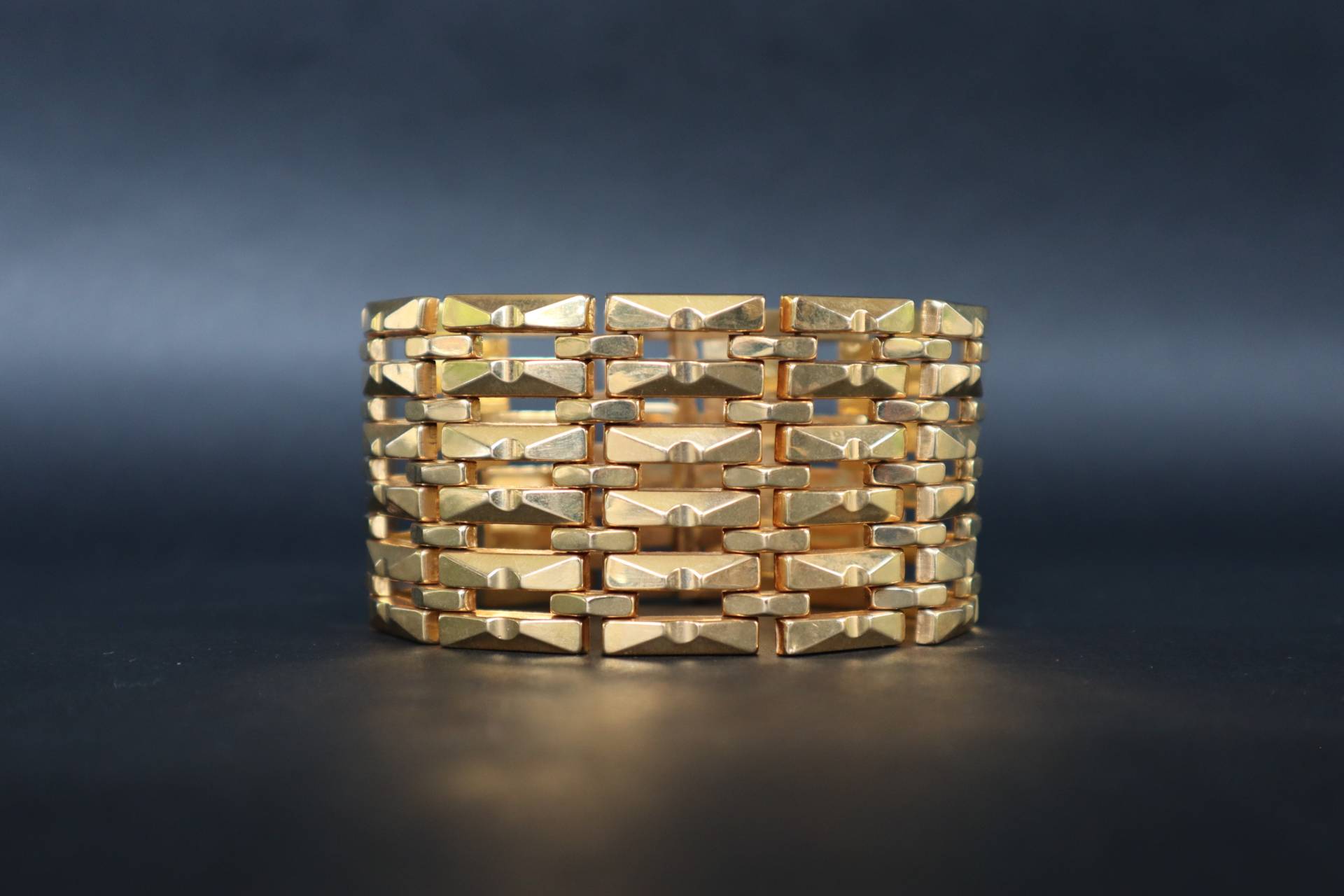 Lot 58: An 18ct yellow gold six bar bracelet, 20cm long, approximately 73.5 grams